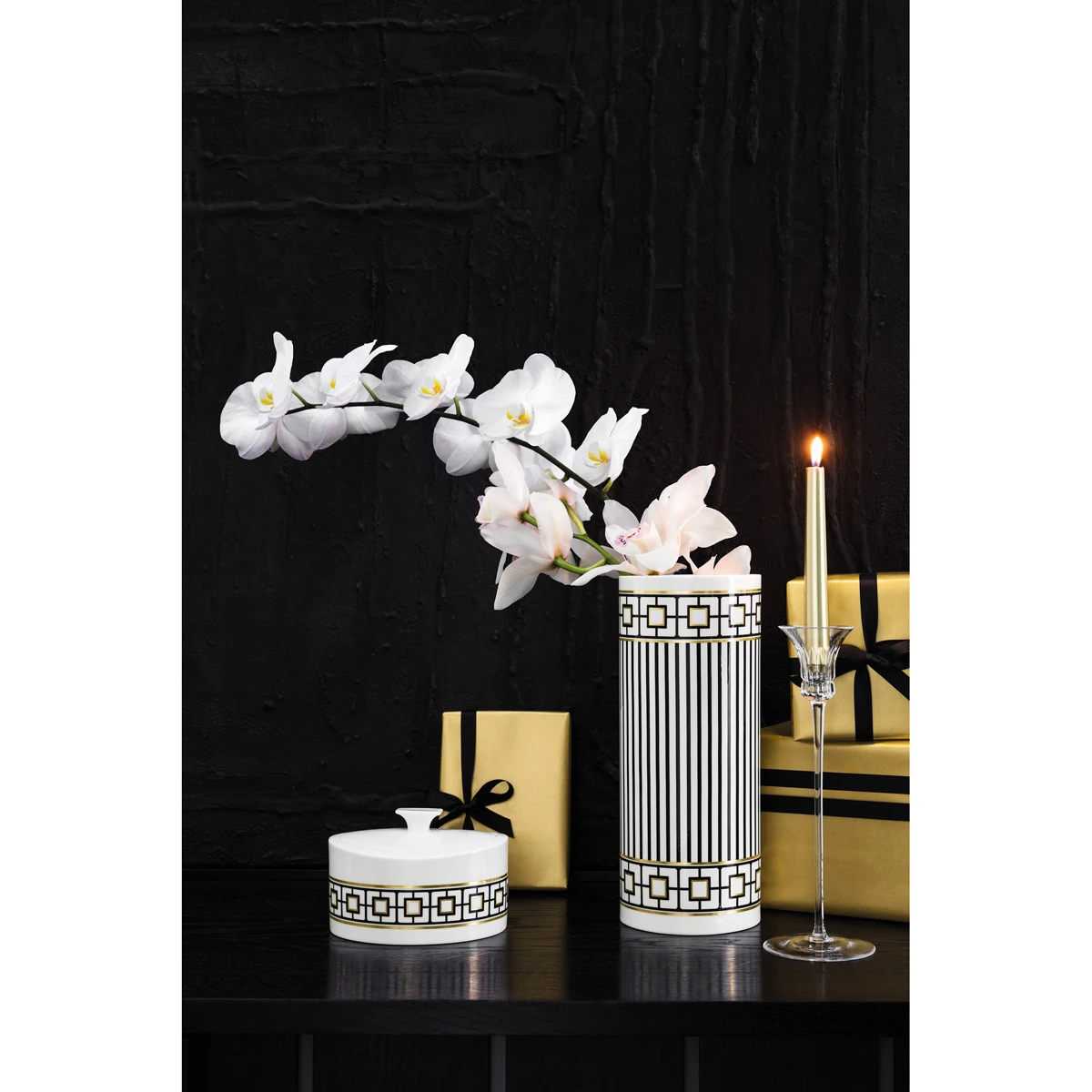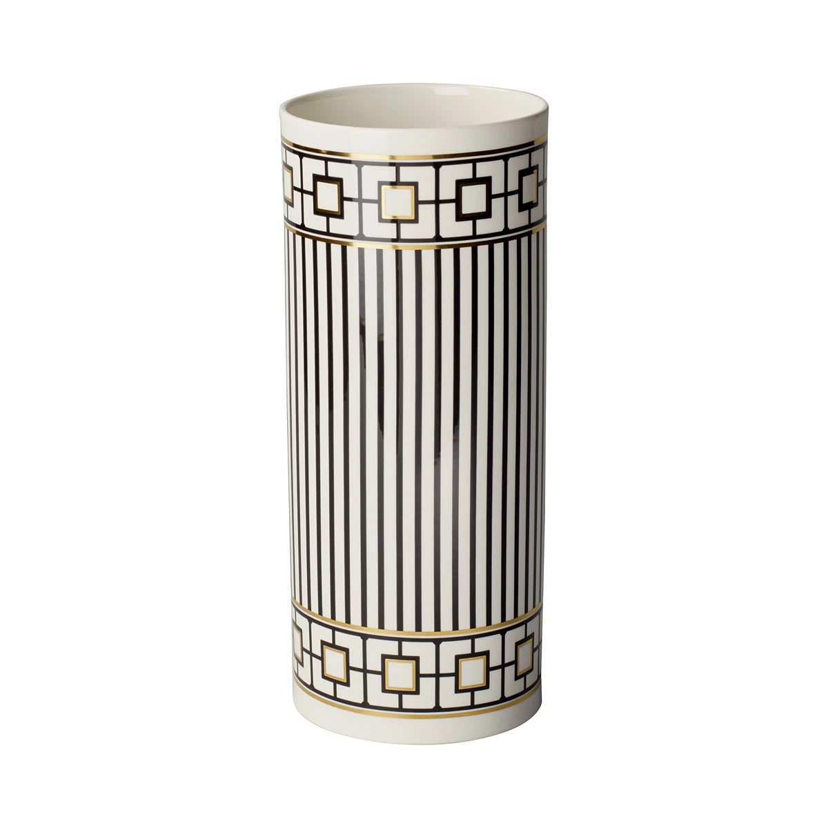 Metro Chic by Villeroy and Boch represents urban elegance. The classic palette of pure white, black and precious gold delights in its geometric design. Metro Chic is part of the Signature series by Villeroy and Boch. Luxury is redefined. Villeroy and Boch has been creating sophisticated tableware since 1748. 12″ L 5″ W 12″ H Cap. 101.5oz. TH 211 China Villeroy and Boch Villeroy and Boch 4003686381896 1044835070 12″ Vase Tall MetroChic Boch and Villeroy
