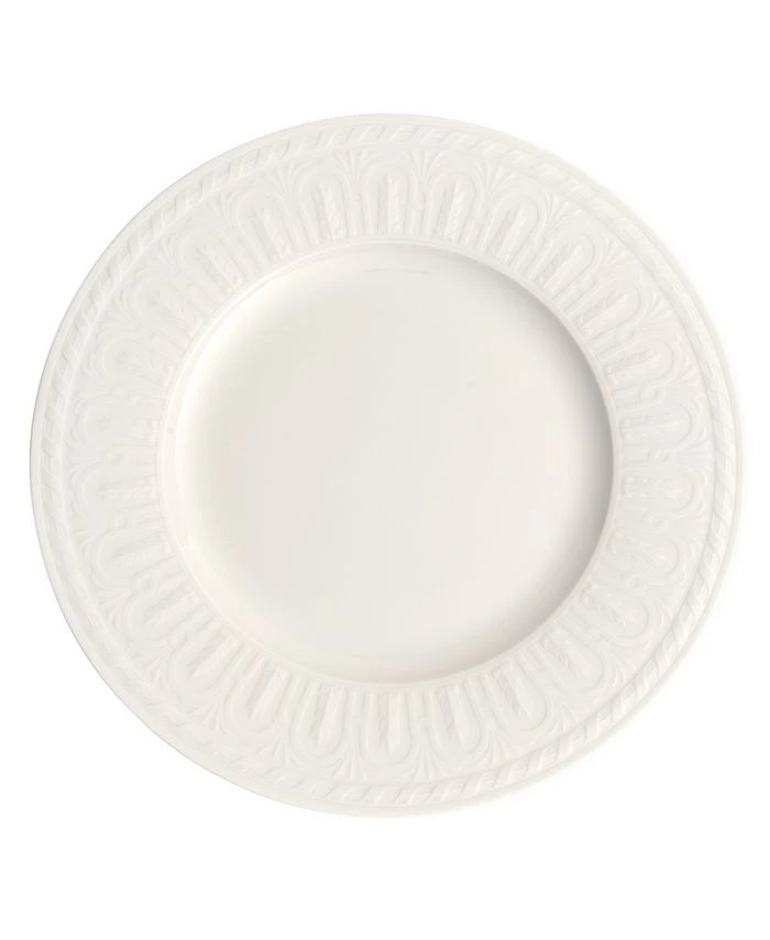 Distinguished by rich relief patterns in milky white china, Villeroy & Boch’s Cellini collection brings European classicism to the table. Dinner plates are adorned with an ornate braided edge and fluted rim. Microwave and dishwasher safe.