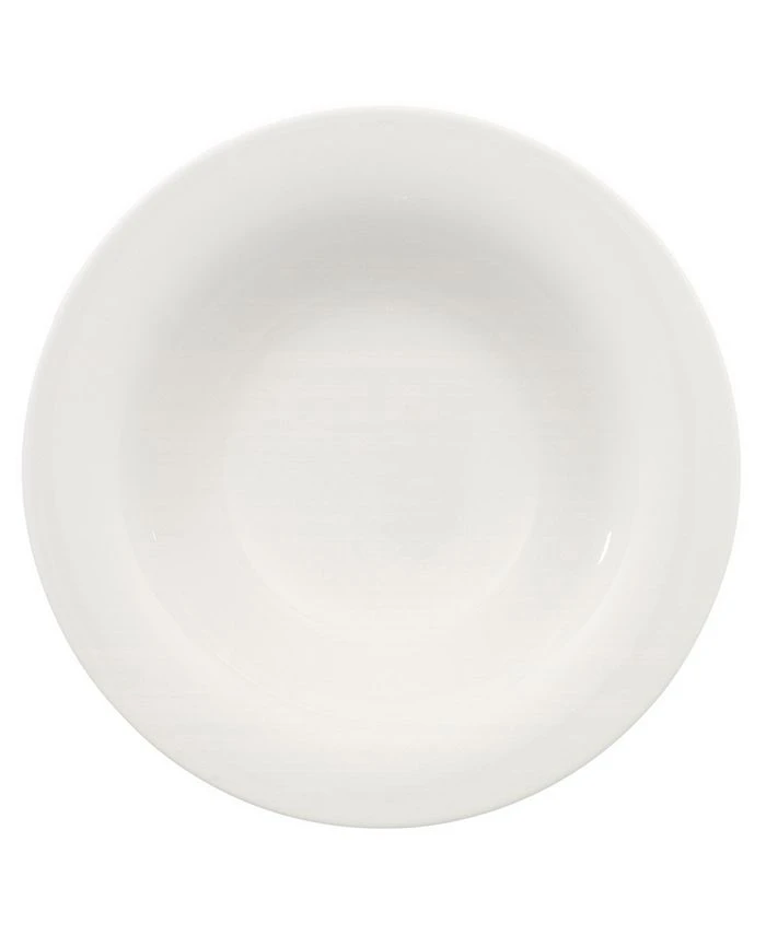 Fresh modern from Villeroy & Boch dinnerware. The dishes in this set are sheer white china in a clean round shape that inspires simply harmonious dining. A soft fluidity and radiant glaze give this rim soup bowl quiet elegance and lasting appeal.