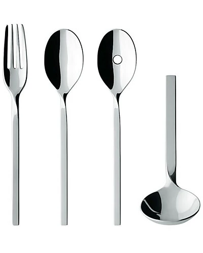 - serve spoon, pierced serve spoon, meat fork, gravy ladle