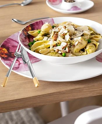 Rose Garden is inspired by the spring, when the sunlight hits the fresh greenery rosebuds. The design is highlighted by soft shades of pinks and reds stylized rose blossoms. Add watercolor florals to your home with Rose Garden. Villeroy Boch has been creating premium tableware since 1748.