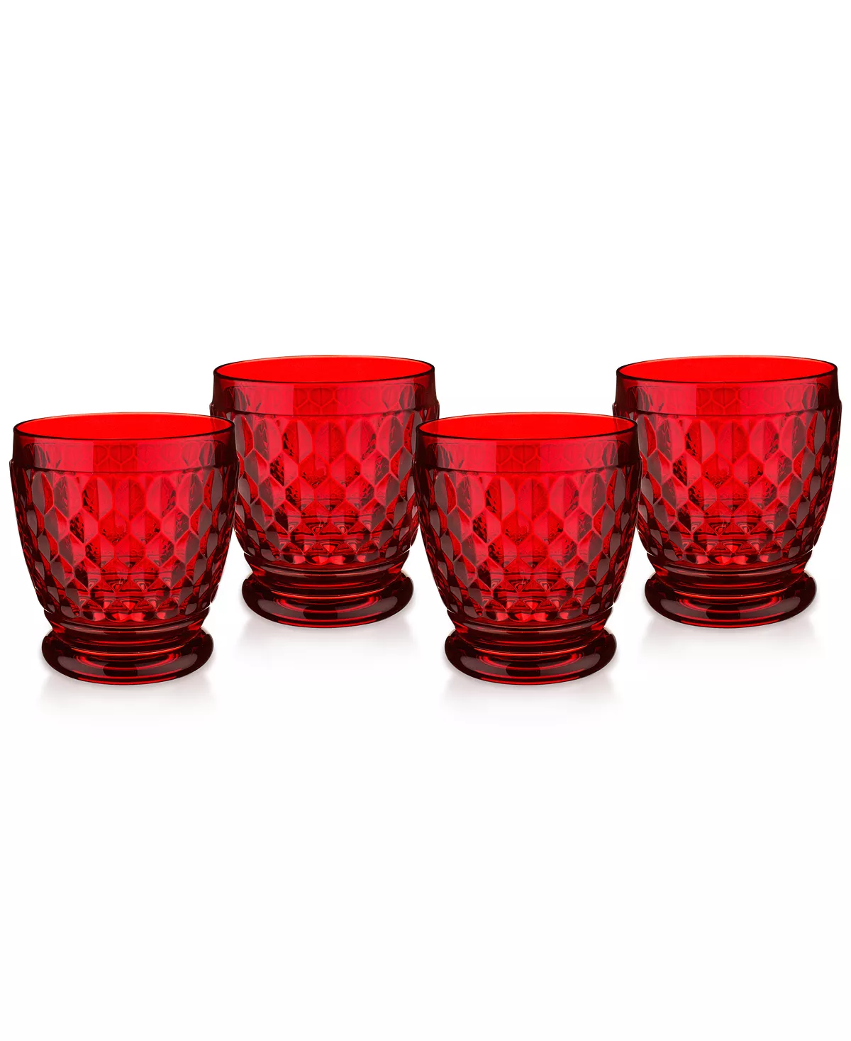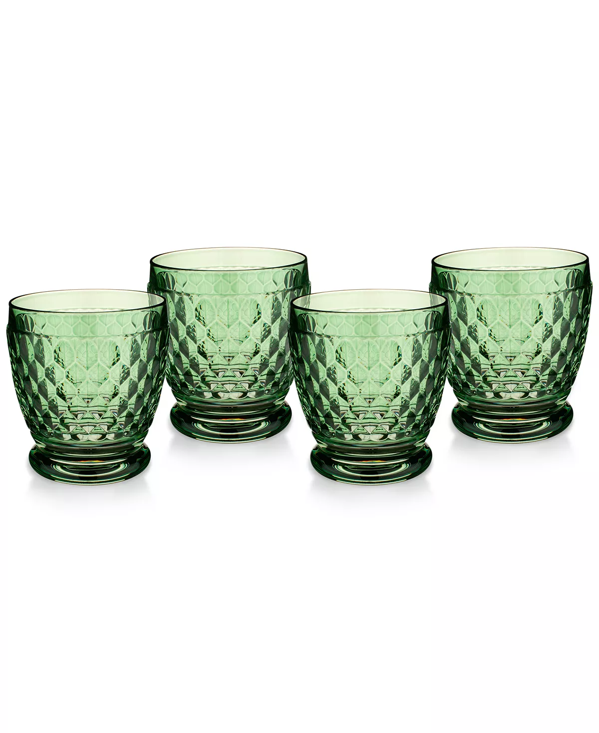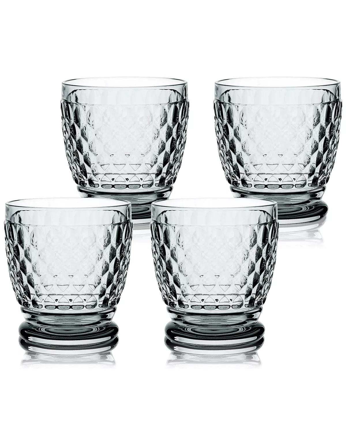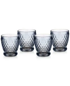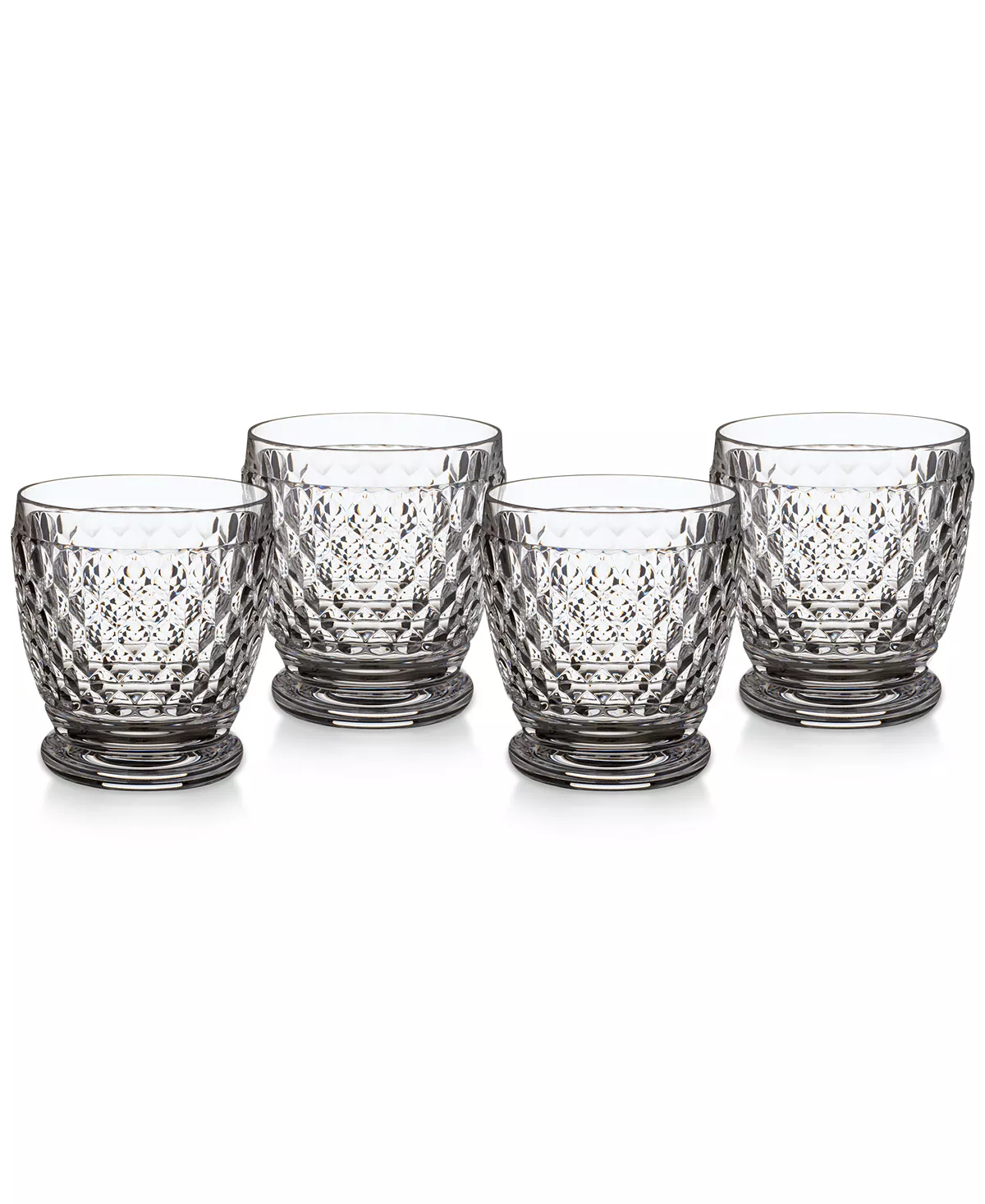 Sip with sophistication. Dressed with a honeycomb pattern, this set of four Villeroy & Boch crystal glasses boast vintage charm.