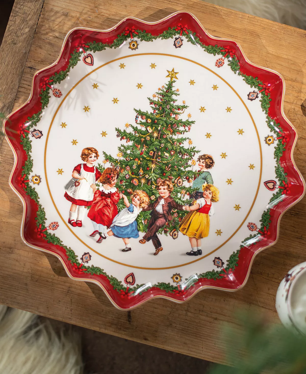 The toy’s fantasy collection is inspired by the age-old German tradition of the feast of St. Nicholas. The woven pillow adds a chamming accent to your holiday decor.