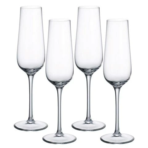 Timeless champagne flute made of high-quality crystal glass for everyday use or special occasions, also ideal as a gift for housewarming or wedding. Ideal feel thanks to the stem, thin edge thickness for comfortable drinking feeling, elegant, narrow shape for first-class champagne enjoyment.